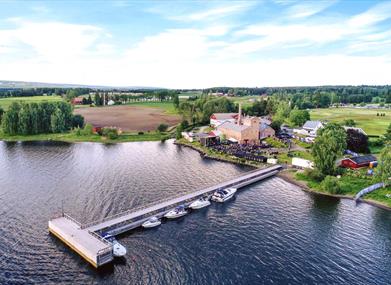 Auch der Raddampfer „weißer Schwan von Mjøsa“ hat Atlungstad Brenneri in seinem Fahrplan stehen. Während der Saison hält Skibladner jeden Sonntag am Anlegesteg in Atlungstad an.